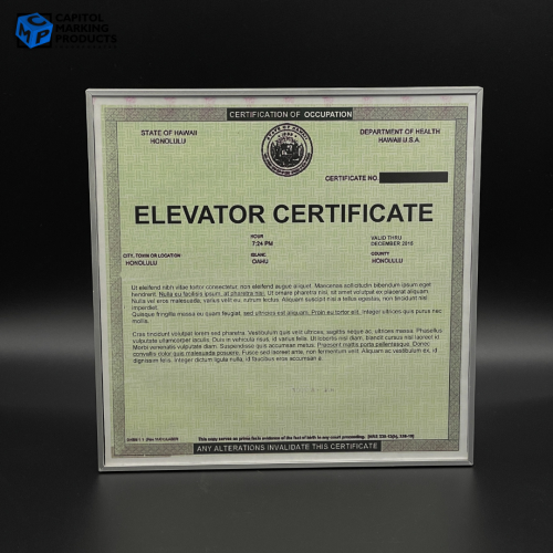 Elevator Inspection Certification Frame #1066